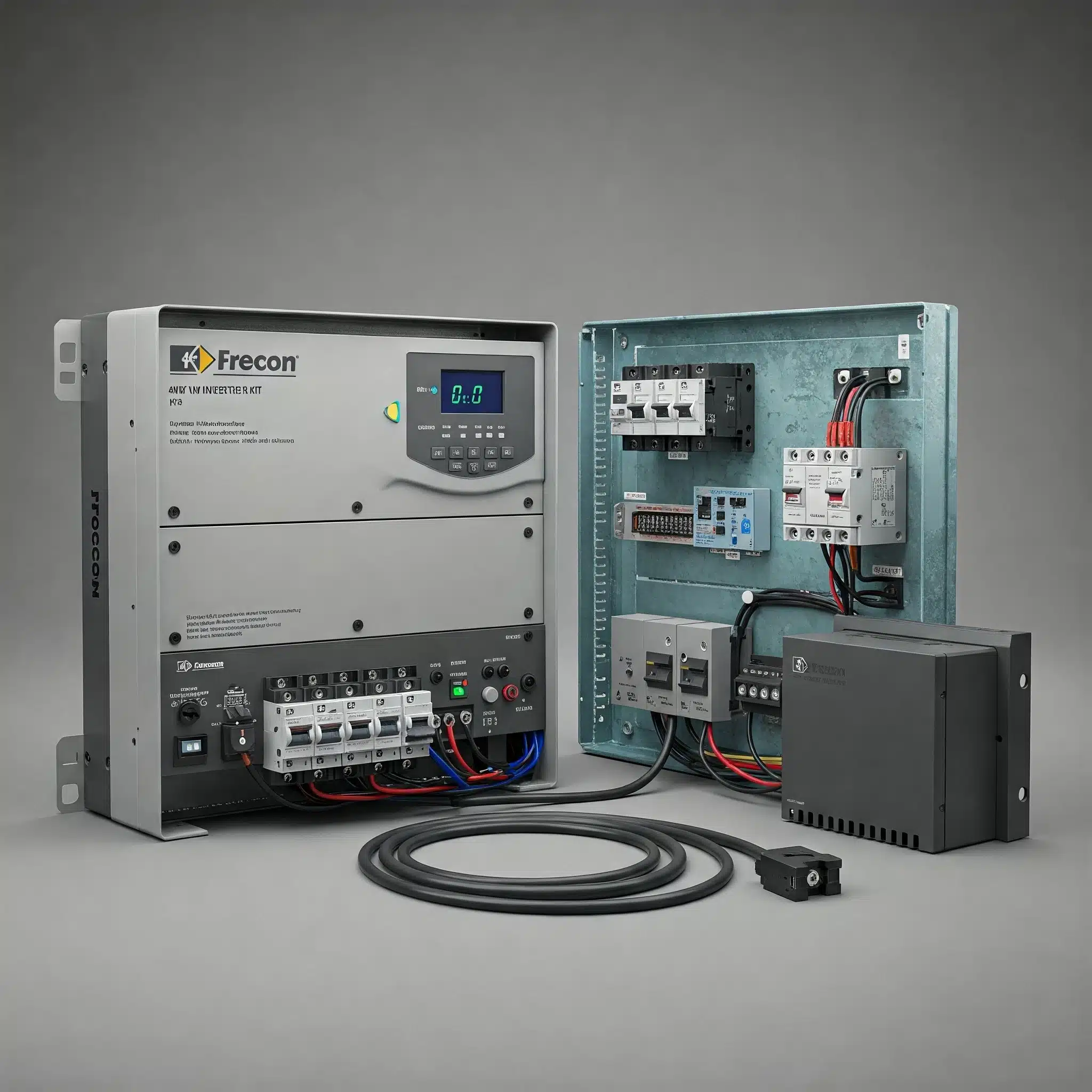 Description: Frecon 4KW 3-Phase Inverter Kit Complete With AC,DC Breakers,Enclosure Box, Changeoverswitch
